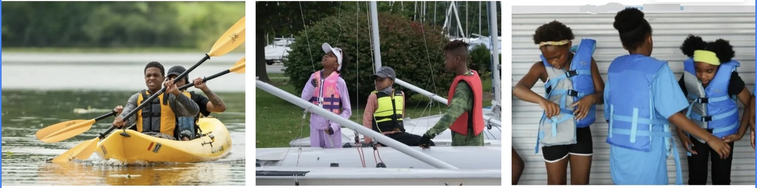 African American kids boating. Get on the water education, training, racing and jobs. African American boaters will teach you how to sail, kayak, standup paddleboard, row and powerboat.